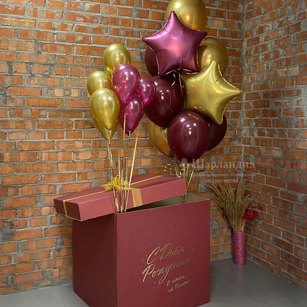 Чтобы заказать в городе Ставрополе набор гелиевых бордовых шаров в коробке-сюрприз существует несколько простых способов: